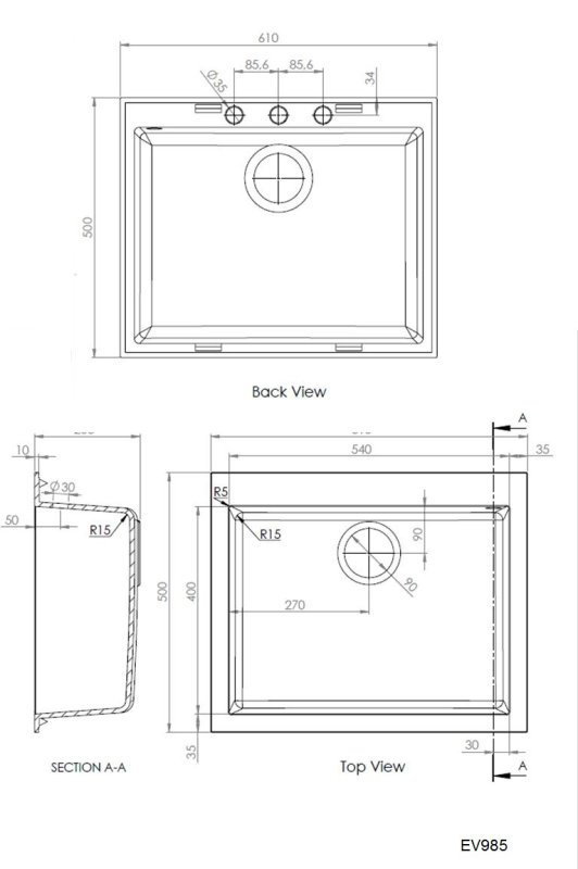 - Mosogatótálca külső mérete: (610mm x 500mm)